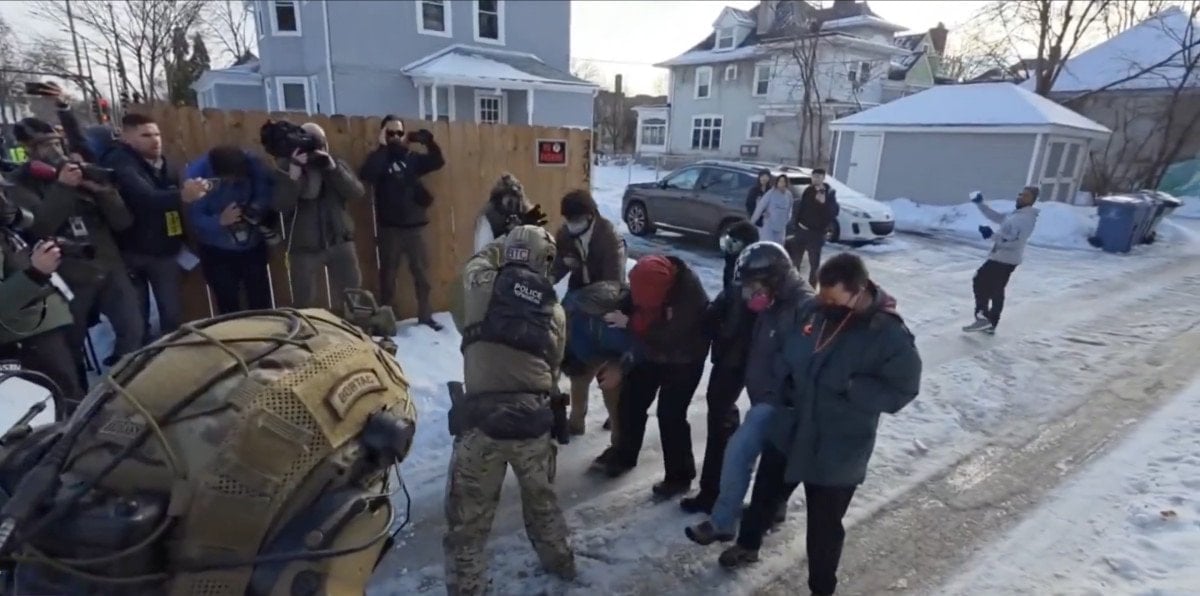 ICE polisinin araçlarının önünü kesen vatandaşlar, arabalara vurarak ve kartopu atarak saldırıda bulundu.